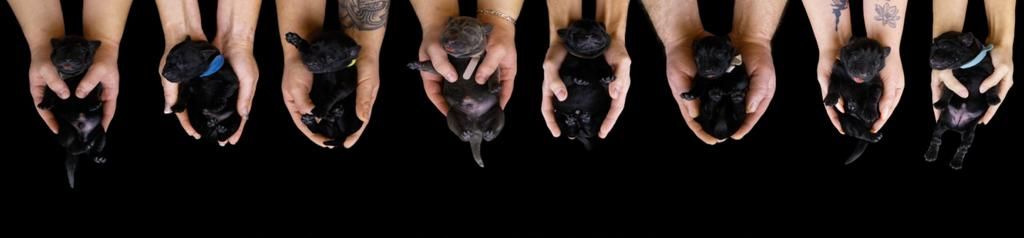 Die übrigen acht Welpen waren kräftig, gesund und voller Leben und bereicherten unseren Alltag von Anfang an. Fast alle sind tiefschwarz, ein Rüde trägt die Farbe Charcoal.